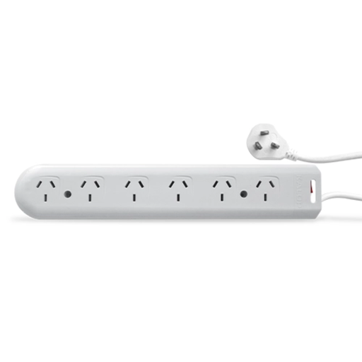 Zapatilla prolongador multiple 6 tomacorrientes con llave termica luminosa 10A 250V 1.5m de cable Kalop blanco